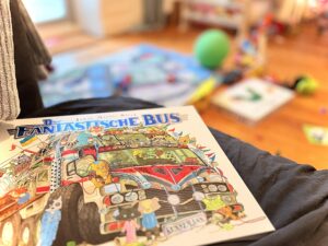 Meinen Enkeln hat das Buch gut gefallen – und ich habe es gegendert und ausgelassen, was für mich nicht sagbar ist. Das haben sie nicht bemerkt, natürlich nicht. Aber es geht hier um mehr: Ich möchte nicht, dass sie Alkohol harmlos finden und denken, dass eine Zigarette neben dem Kopf eines Kinders erlaubt sein kann. Sie sollen von Anfang an verstehen, dass auch Frauen und LSBTIQA* mehr können, als sich Sorgen um kranke Kinder zu machen: Sie können ebenso Bagger fahren können und fantastische Busse montieren. Mindestens.