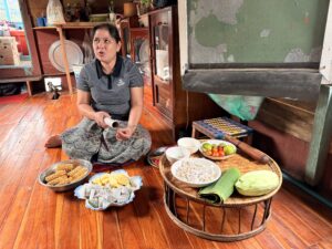 Die meisten Laot:innen leben von ihren Reis- und Kaffeeplantagen, Tierzucht wie auch vom Obst- und Gemüseanbau. Ich habe keinen Hunger gesehen. Am Ufer des Mekon und im Landesinneren wachsen Bananen, Avocado, Zitronen, Kokos- und Cashewnüsse, Tamarinde und Mango. Die Märkte haben reichhaltige Angebote. In einem Ort habe ich Weberinnen zugesehen, die wunderbare Stoffe produzieren. Ein Schal kostete mich nur 5 Dollar.