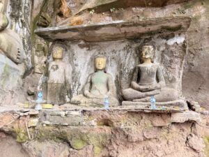 Das Land ist übersät mit Buddhas, von riesigen, die auf Bergen thronen und weithin sichtbar sind wie Winzlinge, die in Einbuchtungen von Tempelanlagen oder Höhlen ihr Dasein fristen.